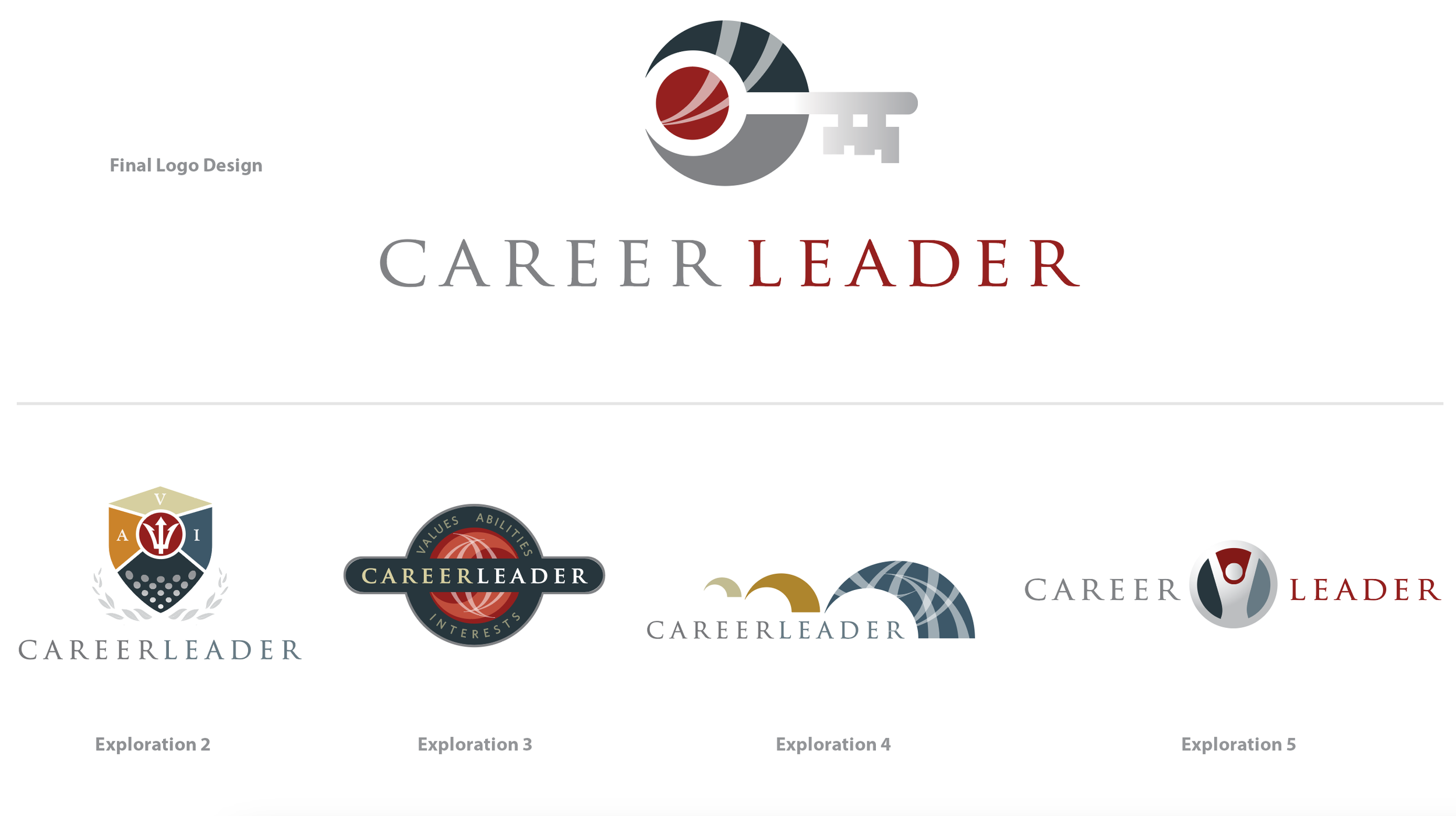 CareerLeader. Created the logo through an iterative visual exploration that yielded multiple options; each based on a different set of possible brand messages and characteristics. The final, primary brand message: “Unlock your full potential”.